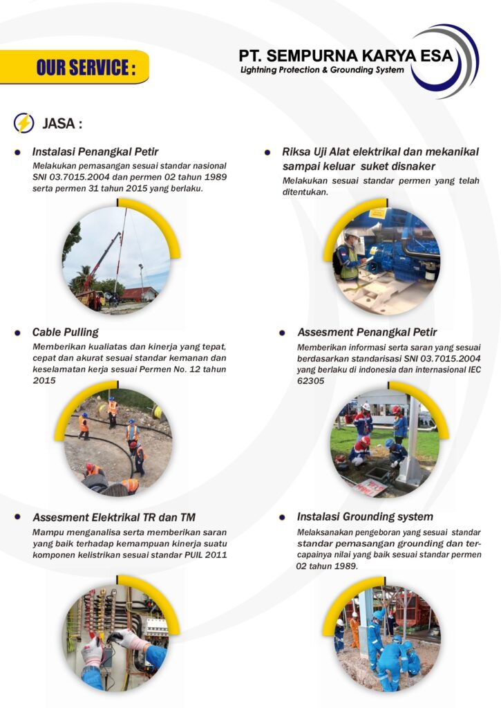 PT. Sempurna Karya Esa melayani pemasangan grounding penangkal petir profesional untuk gedung perkantoran, rumah, hotel, lapangan golf, area tambang, pabrik, maupun gedung bertingkat. Info layanan hubungi telepon/whatsapp0858 9291 7794.